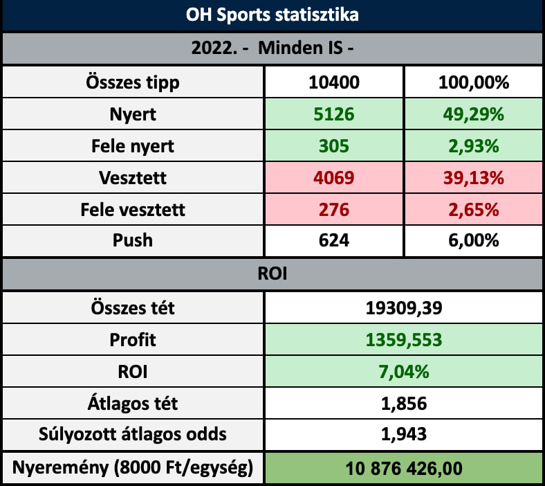 Az OH Sports összesített 2022-es statisztikája