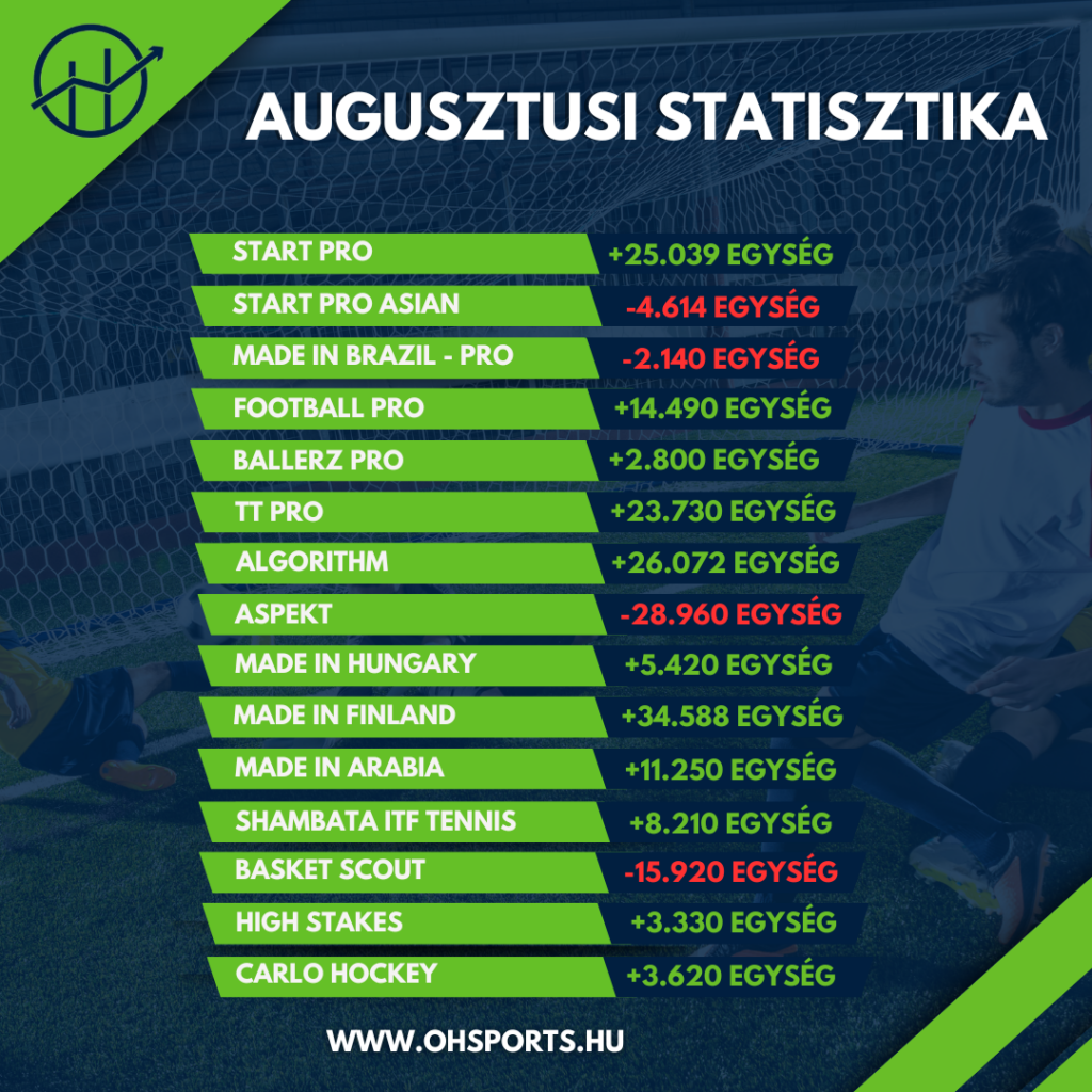 ★ 31 tipp; +8.210 egység; +19.58% ROI ✅