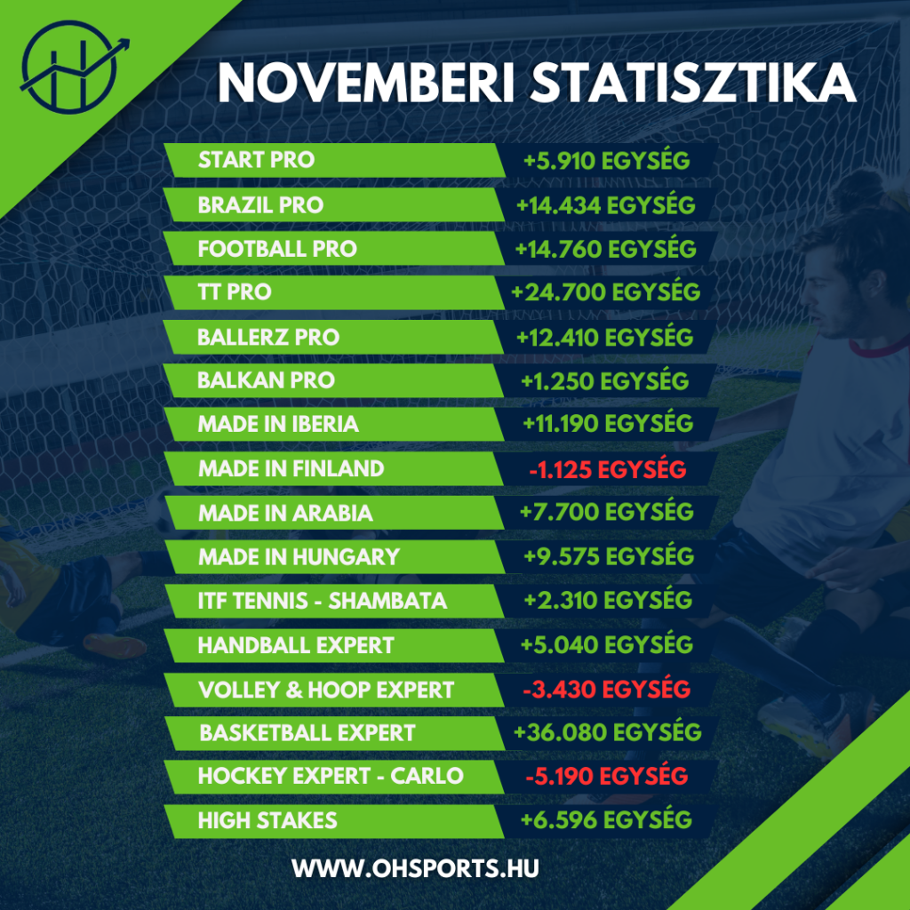 ★ 69 tipp; +12.410 egység; +11.28% ROI ✅